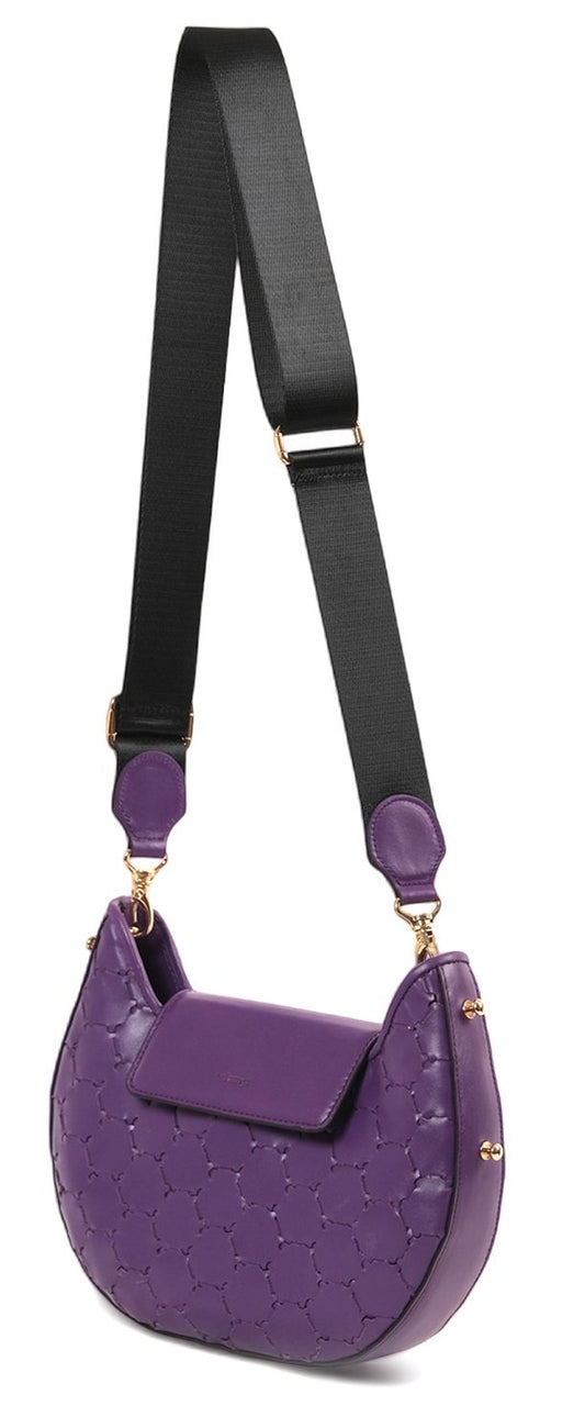 Anqa Woven Leather Moon Crossbody & Shoulder Bag Purple