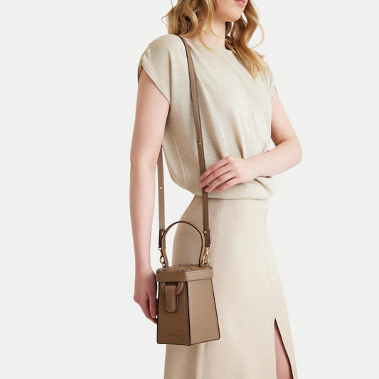 ELIF Olive Leather Hexagon Bag Mink