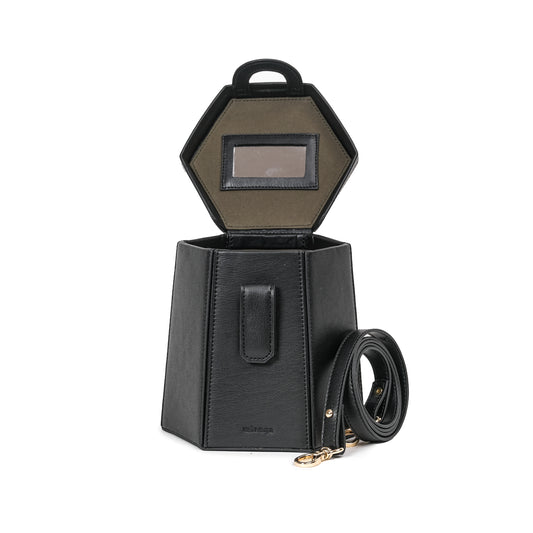 ELIF Plant-Based Vegan Leather Hexagon Bag Black