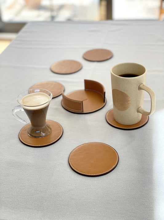 Vegan Apple Leather Coaster Camel