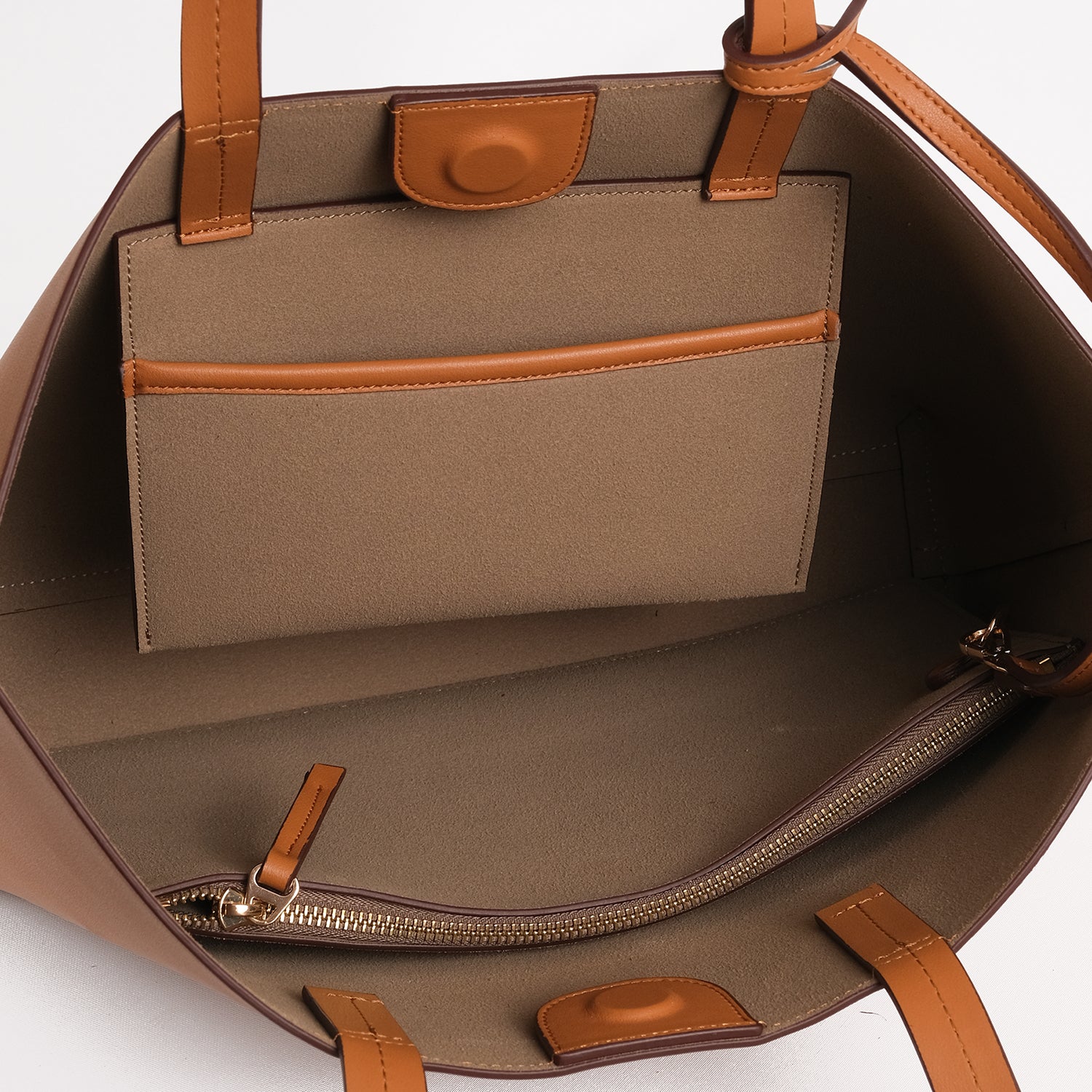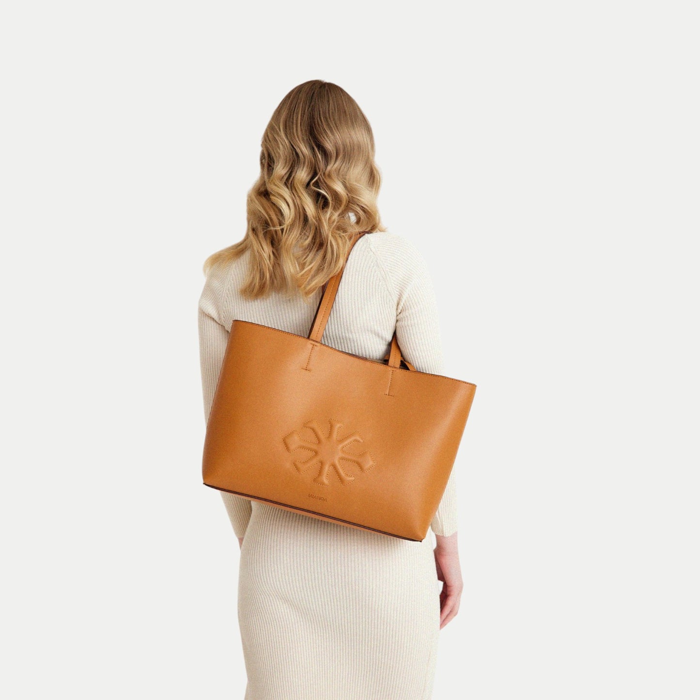 Big and light, this spacious tote bag has a removable inner zip pouch and a phone sleeve. Handmade from plant-based vegan leather, our minimalistic tote will complement your lifestyle, making it the perfect go-to for every day.