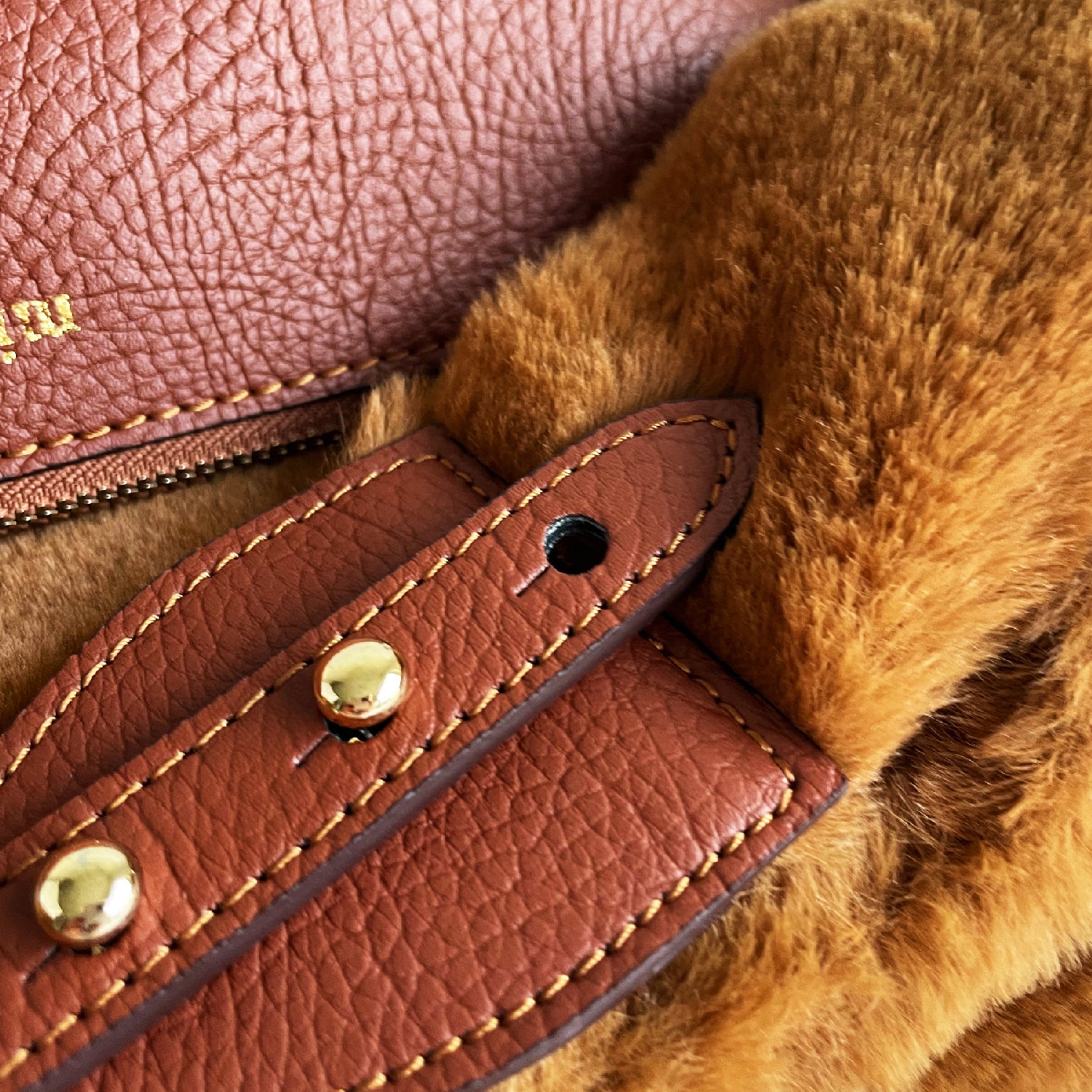 AMBRIOSA Vegan Apple Leather Faux Fur Shoulder Bag
