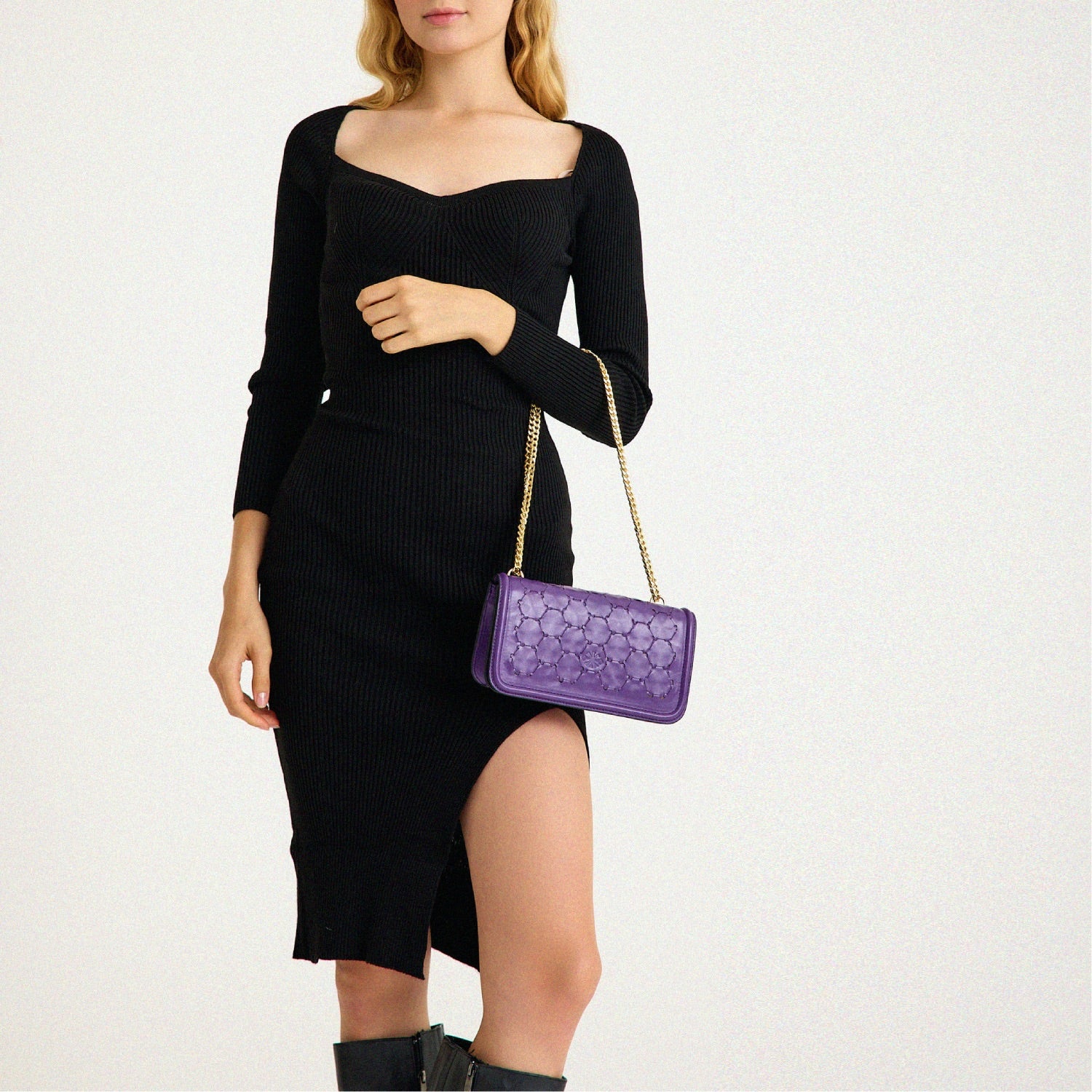 Anqa Woven Leather Baguette Crossbody & Shoulder Bag Purple