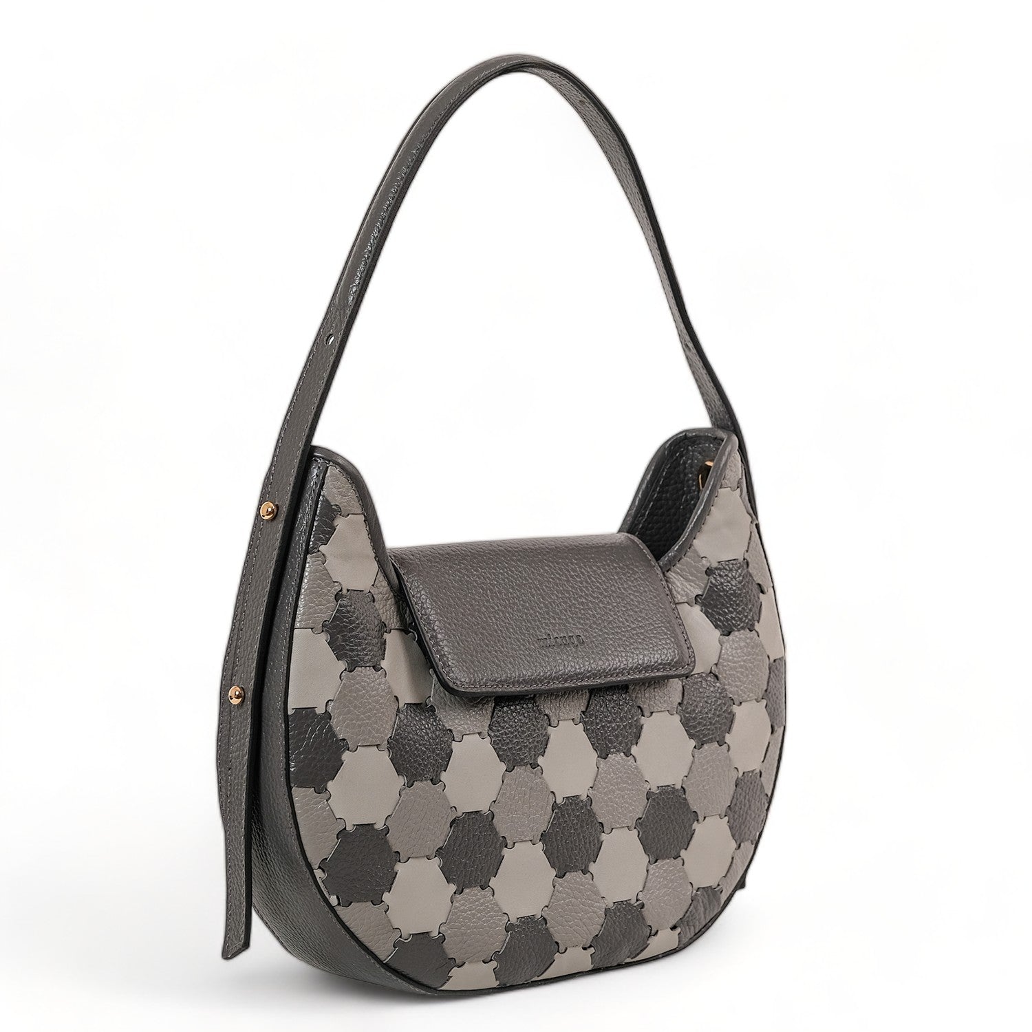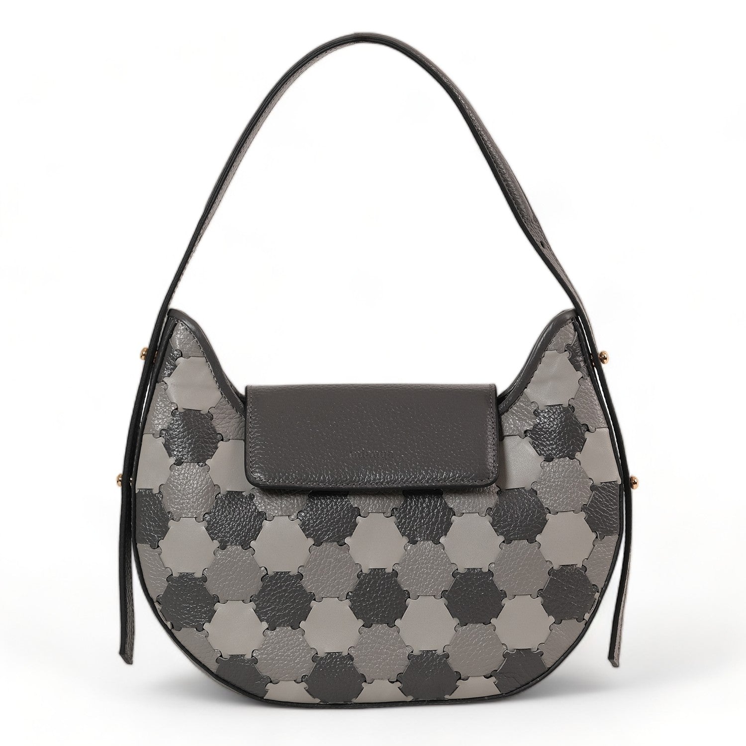 Anqa Woven Leather Moon Crossbody & Shoulder Bag Grey