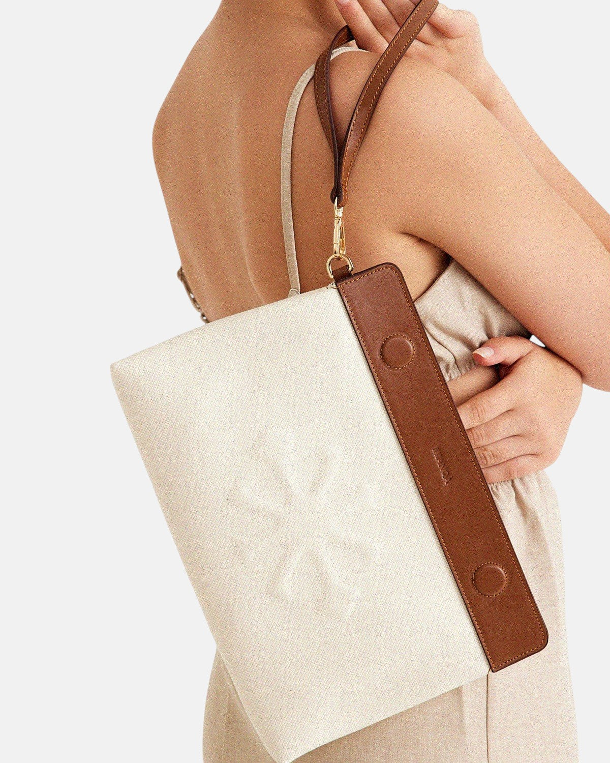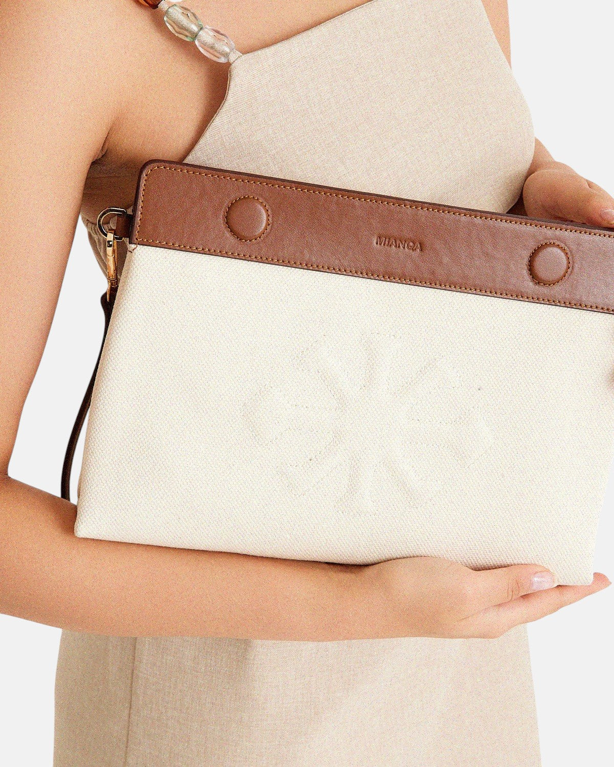 Canvas & Leather Clutch White