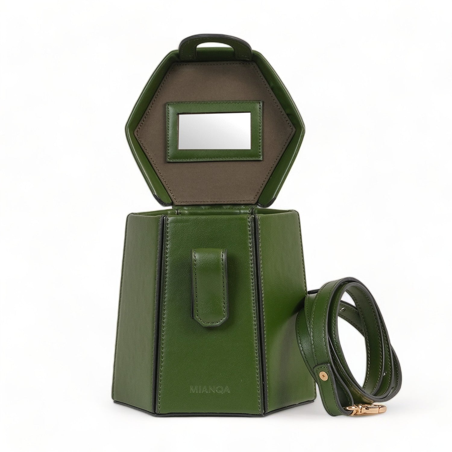 ELIF Cactus Leather Leather Hexagon Bag Green
