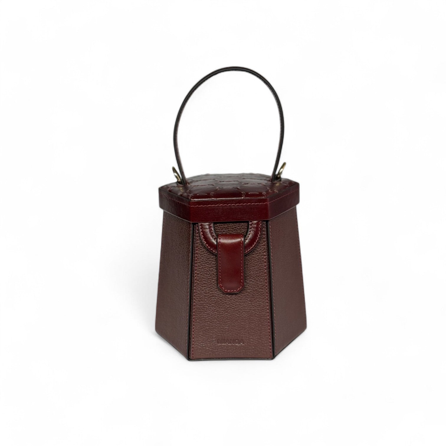 The noteworthy hexagon shape of E L I F, is inspired by our signature hexagon weave design, Anqa weave. The shining star of our collection comes with a long adjustable shoulder strap and a mirror under the flap and it will accompany you everywhere with its spacious interior design.