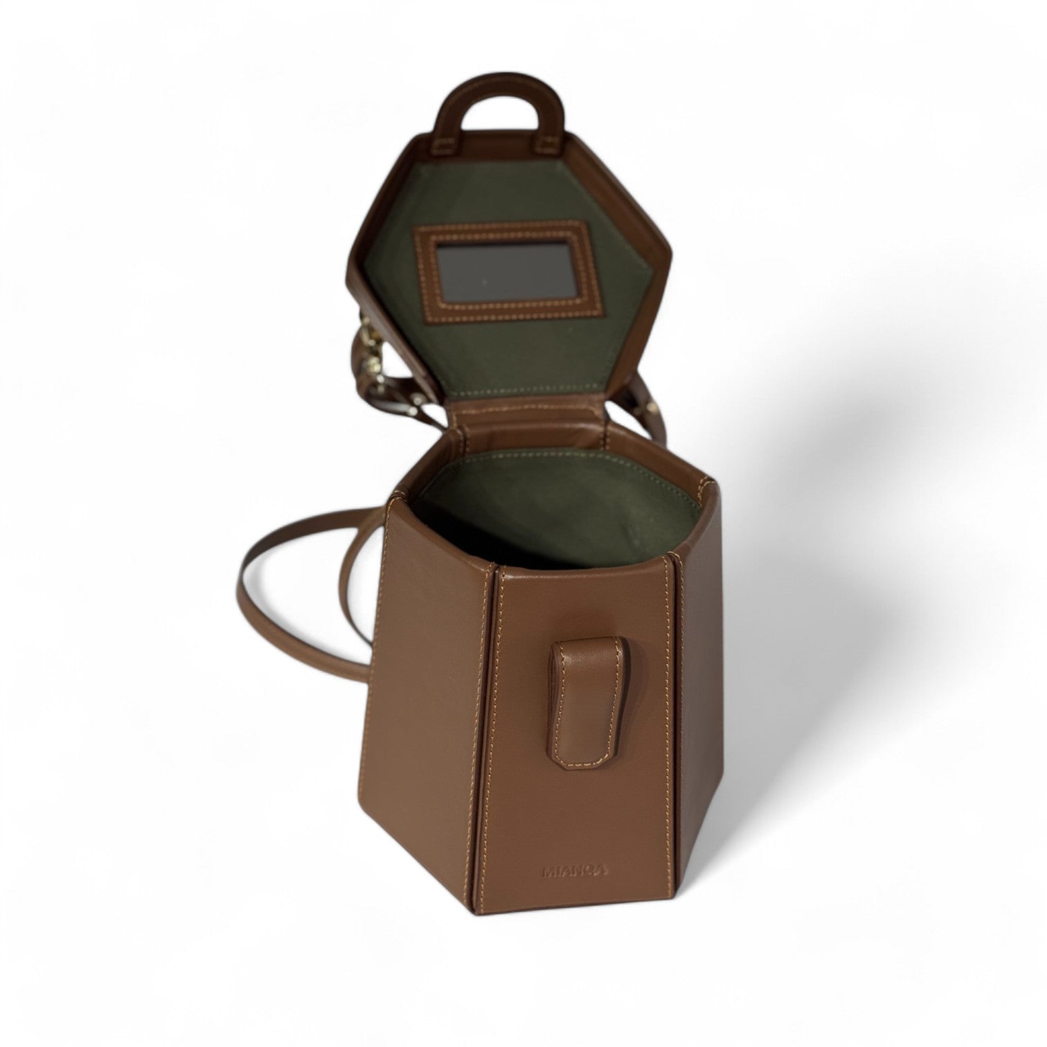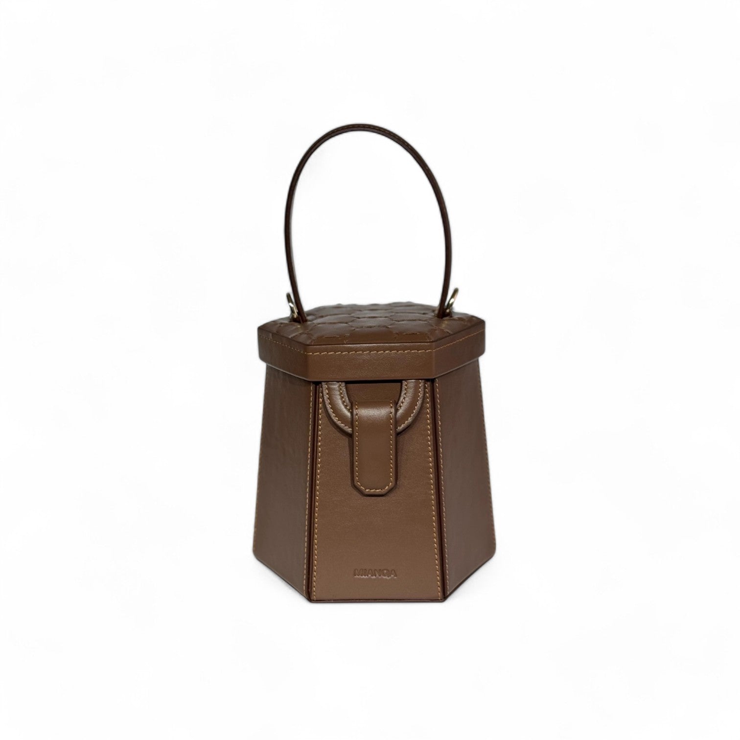 The noteworthy hexagon shape of E L I F, is inspired by our signature hexagon weave design, Anqa weave. The shining star of our collection comes with a long adjustable shoulder strap and a mirror under the flap and it will accompany you everywhere with its spacious interior design.
