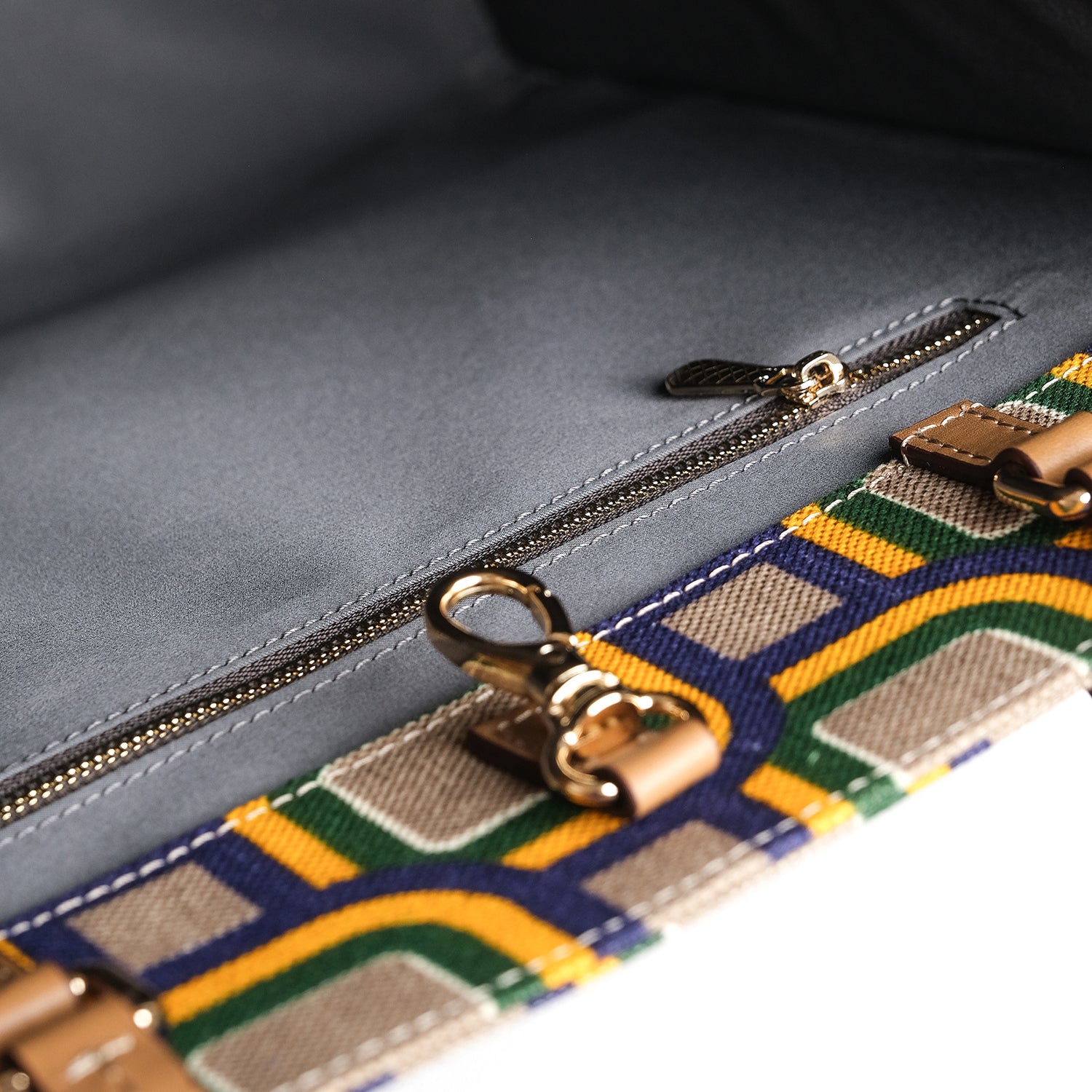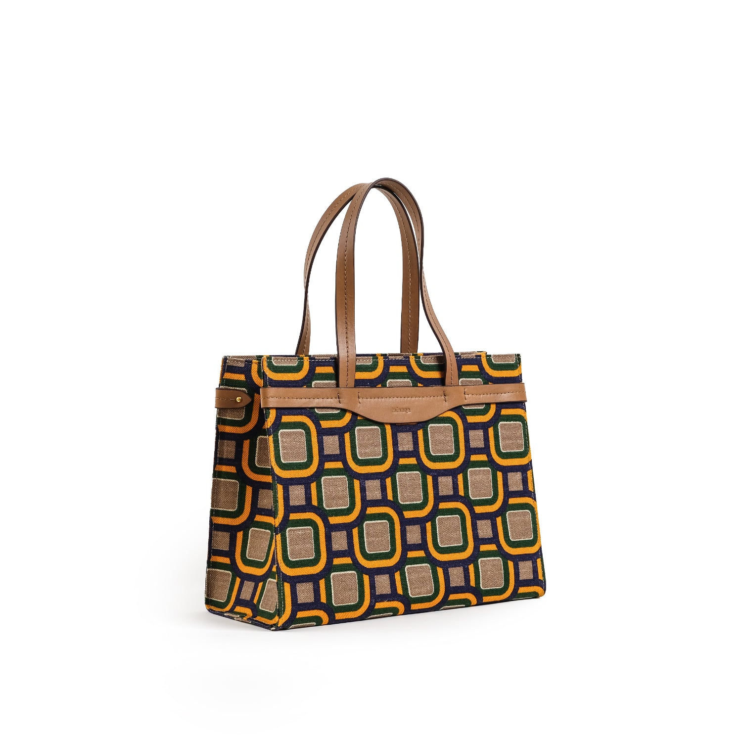 Fabric & Leather Tote Bag Medium Mixed Colors