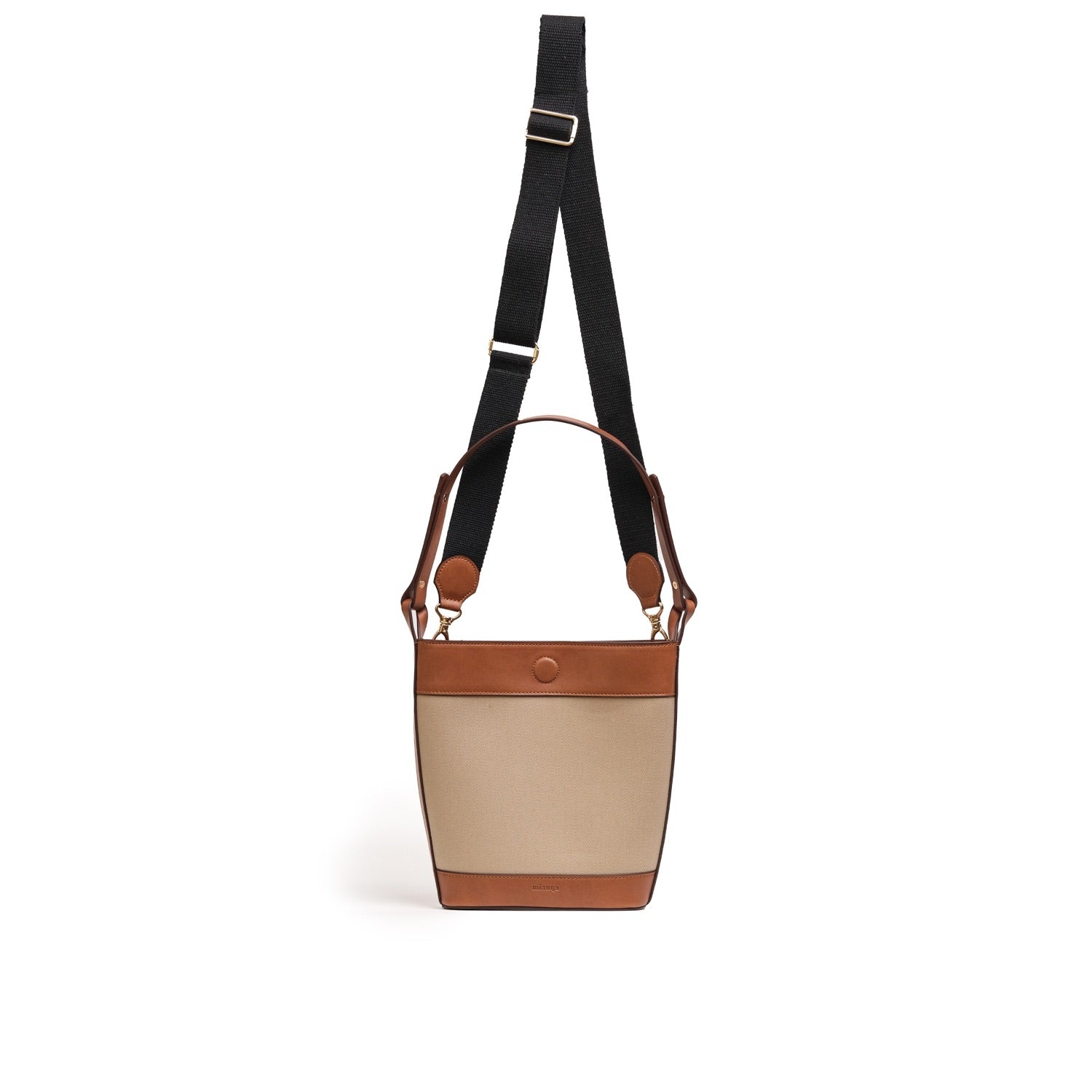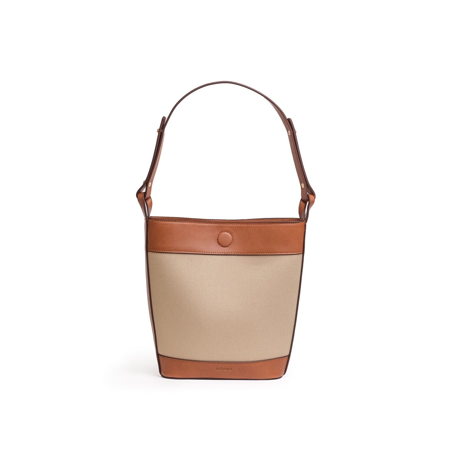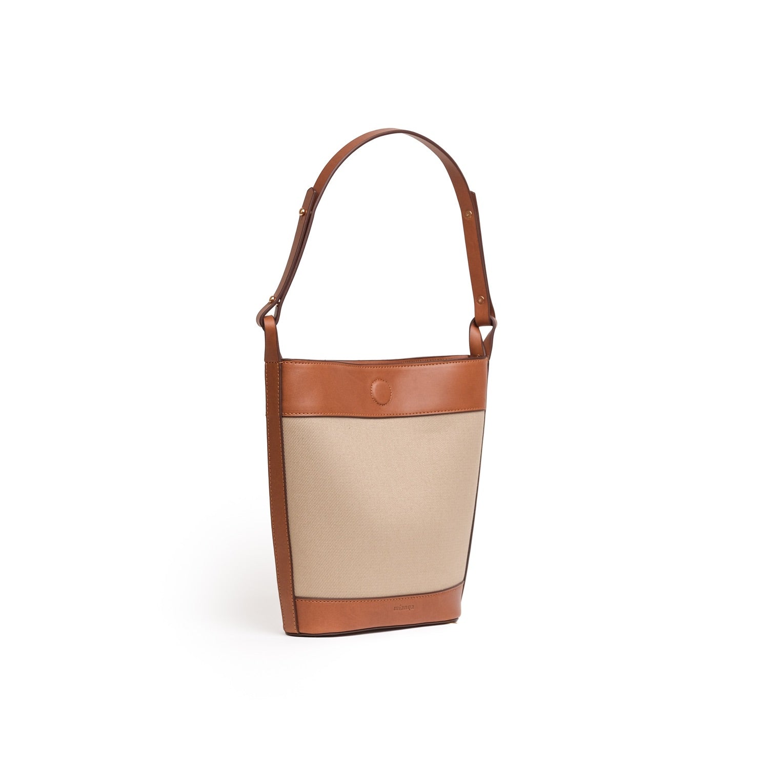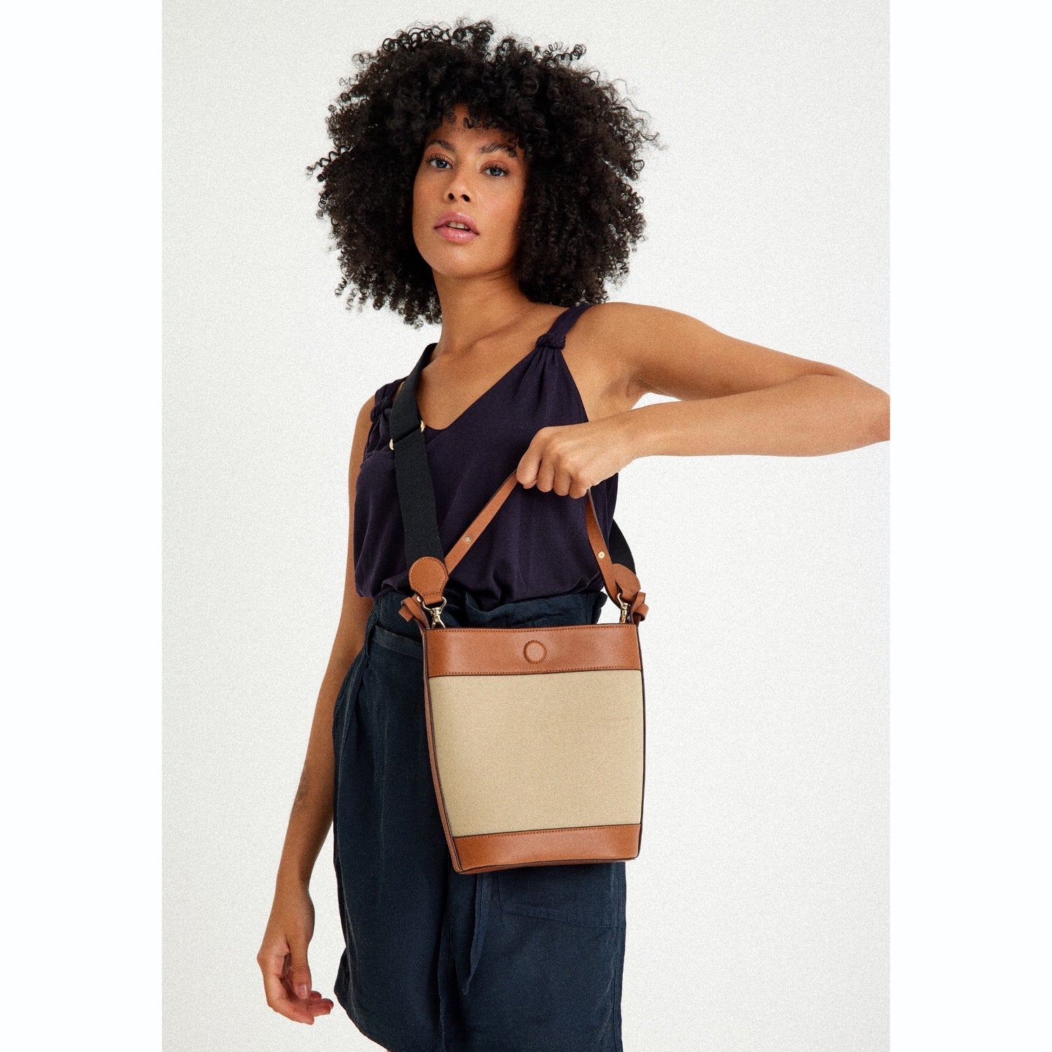 Vegan Apple Leather & Fabric Bucket Shoulder & Crossbody Bag Beige