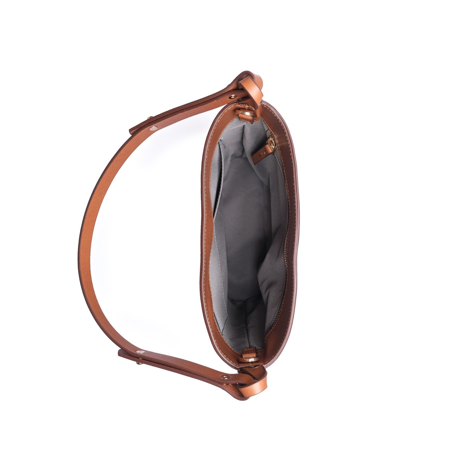 Designed with modern details, our small shoulder bag is made of deadstock fabrics and vegan apple leather. Apple Leather is an animal free and plant-based leather alternative, produced using fibres derived as residuals from the industrial processing of apples.