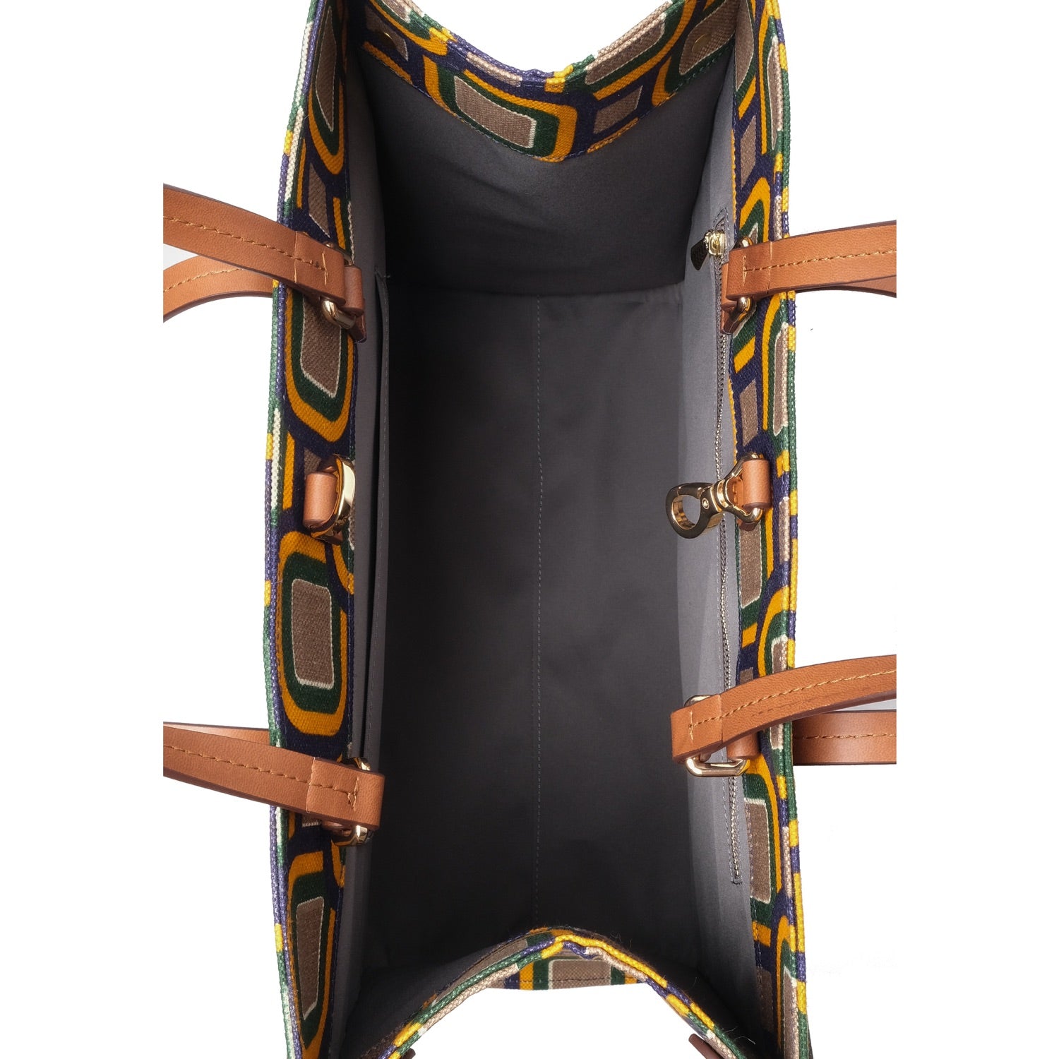 Vegan Apple Leather & Fabric Large Tote Mix Color