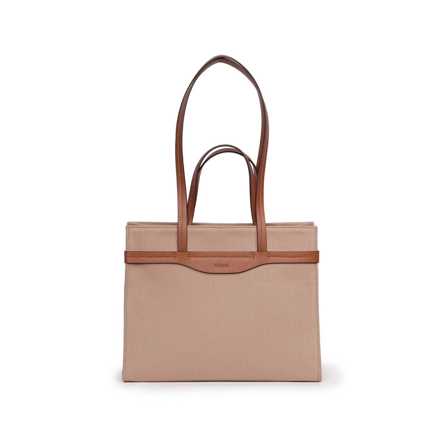 Vegan Apple Leather & Fabric Medium Tote Beige