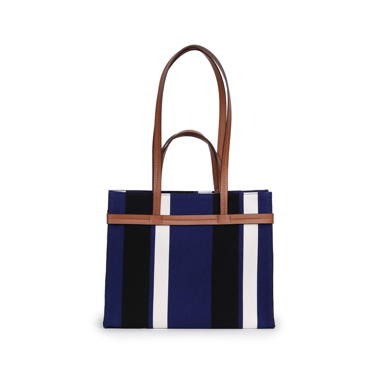 Vegan Apple Leather & Fabric Medium Tote Navy