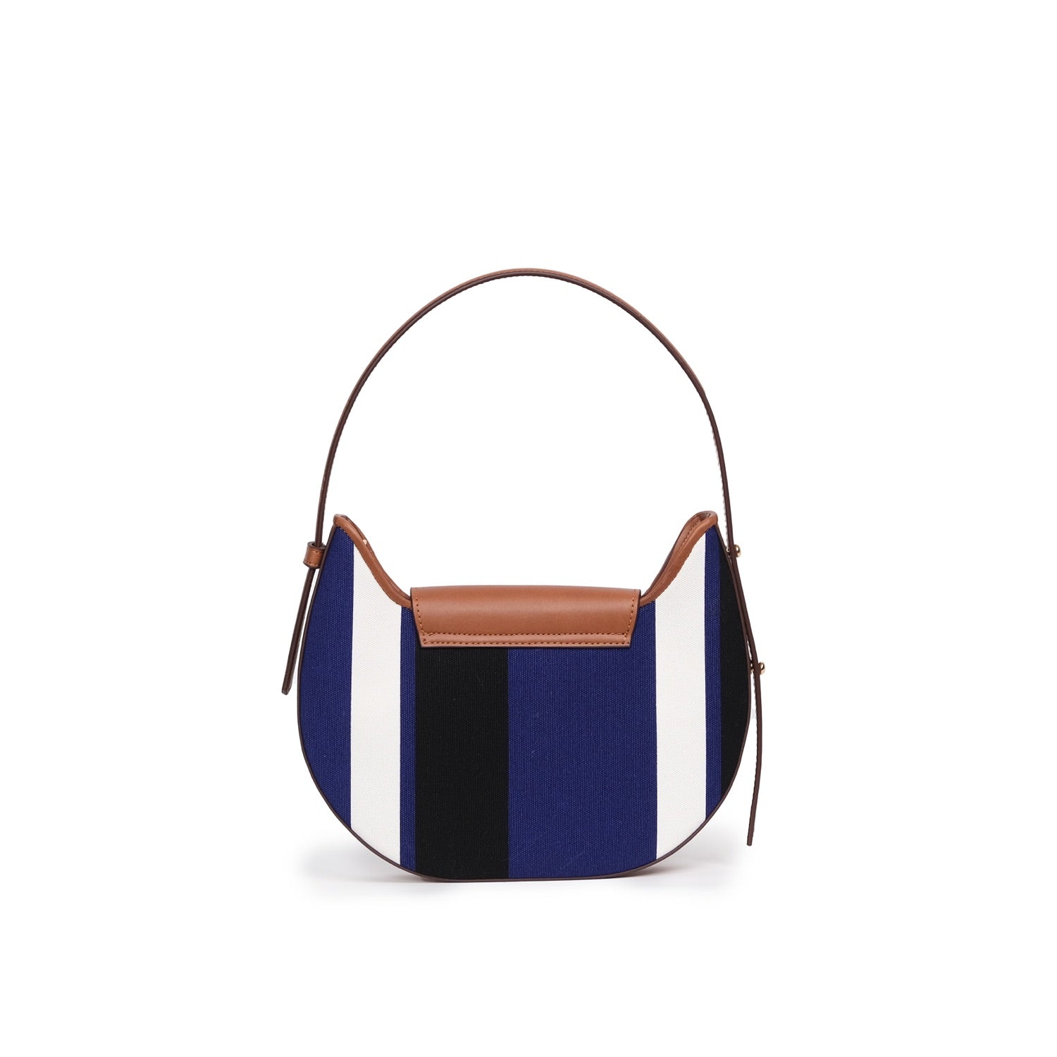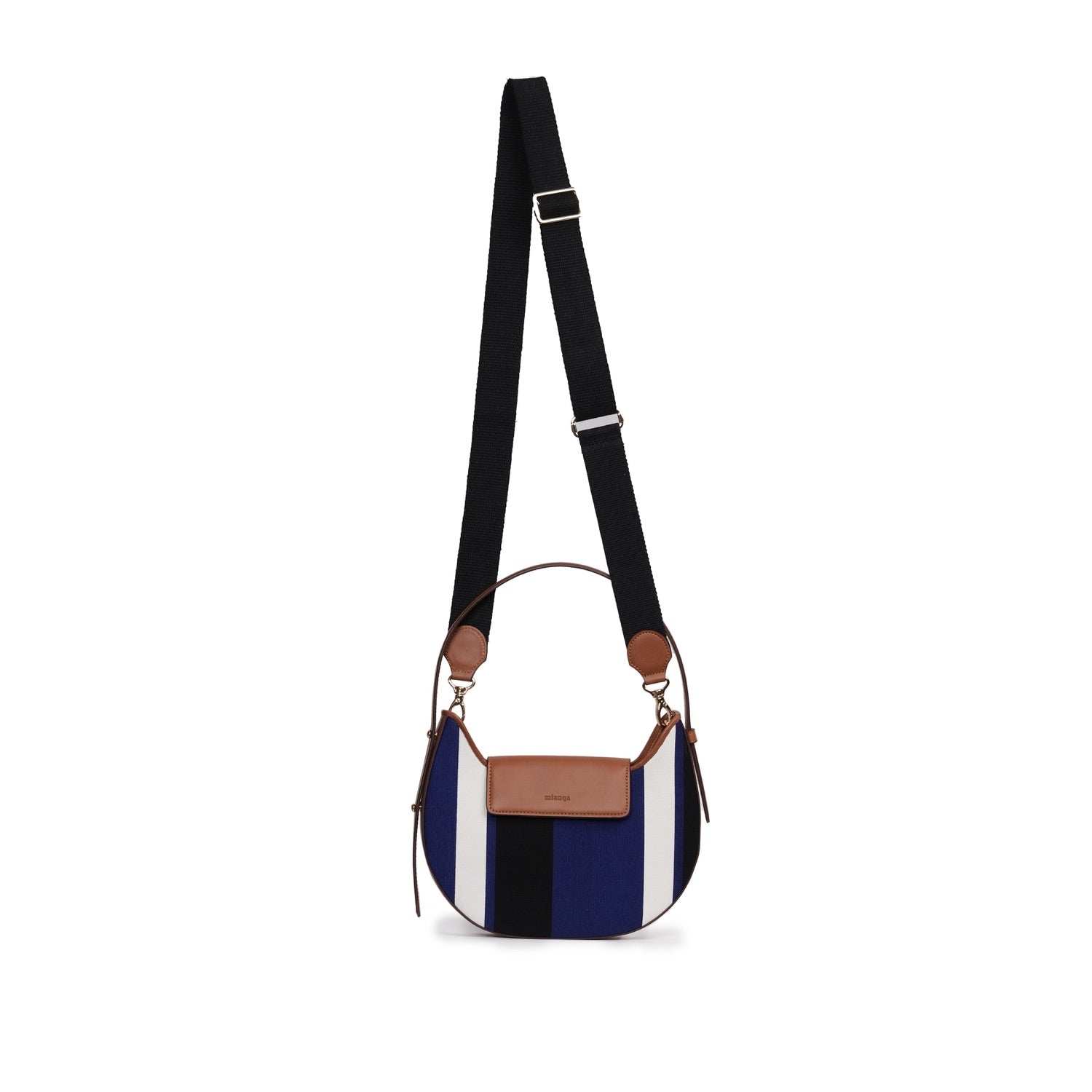 Vegan Apple Leather & Fabric Moon Shoulder Bag Navy