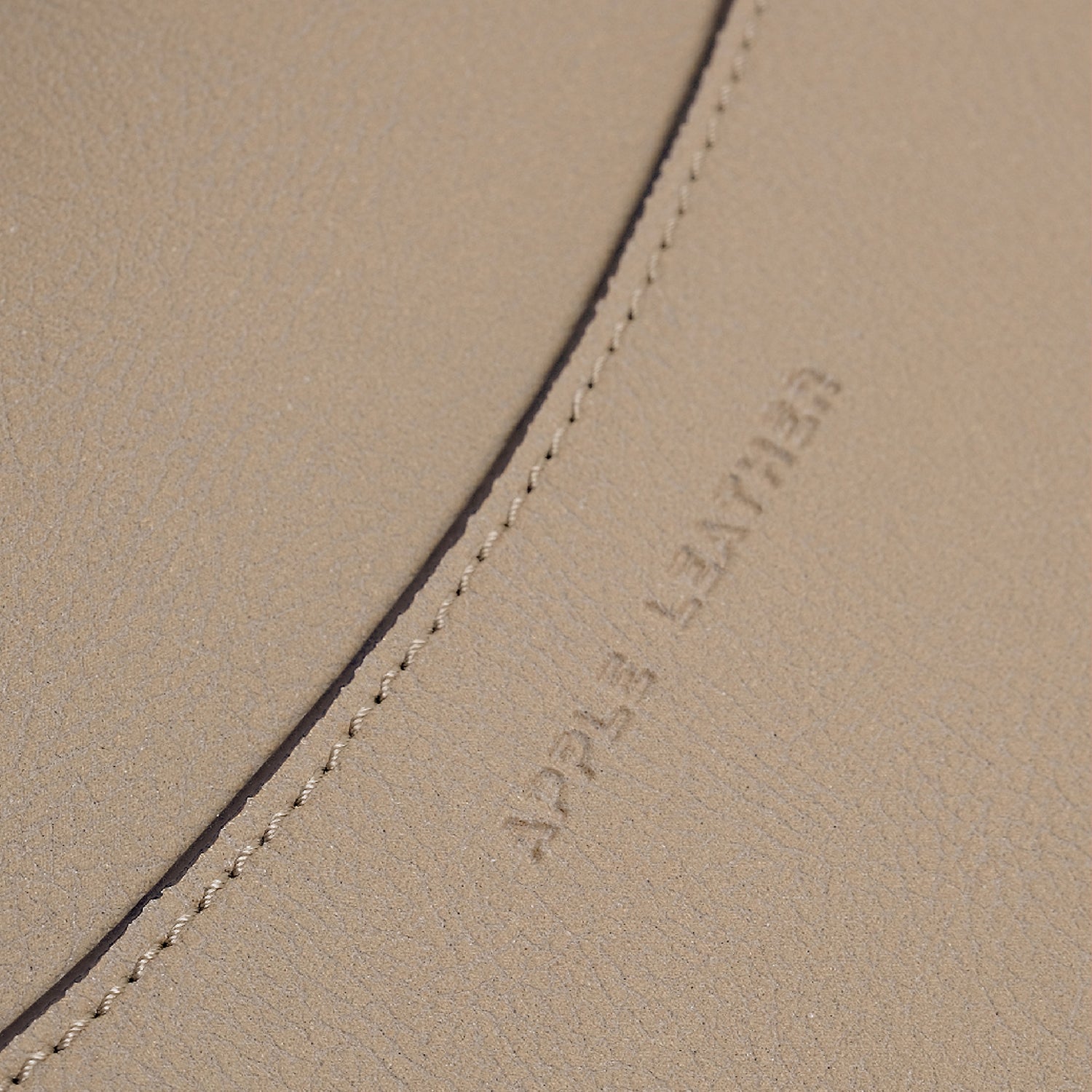 Apple leather is a sustainable vegan leather, produced by using fibres derived as residuals from the industrial processing of apples. This plant-based leather alternative patented by Frumat is made in Italy.